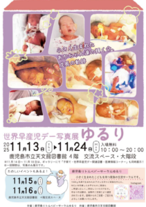鹿児島県では,11月17日の「世界早産児デー」に併せて,早産における課題や負担に対する県民の理解を深めるための啓発活動を,以下のとおり実施します。